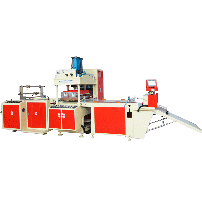 卷料高頻壓痕模切機適用于PVC,APET,PP,PS成卷塑料膠盒壓痕模切成形。成卷膠片上機,機器自動拉料壓痕模切成形,手工將壓痕模切好的塑料膠盒取下,塑料膠盒柔軟線條深淺適中、不發白,柔軟易折、久折不斷